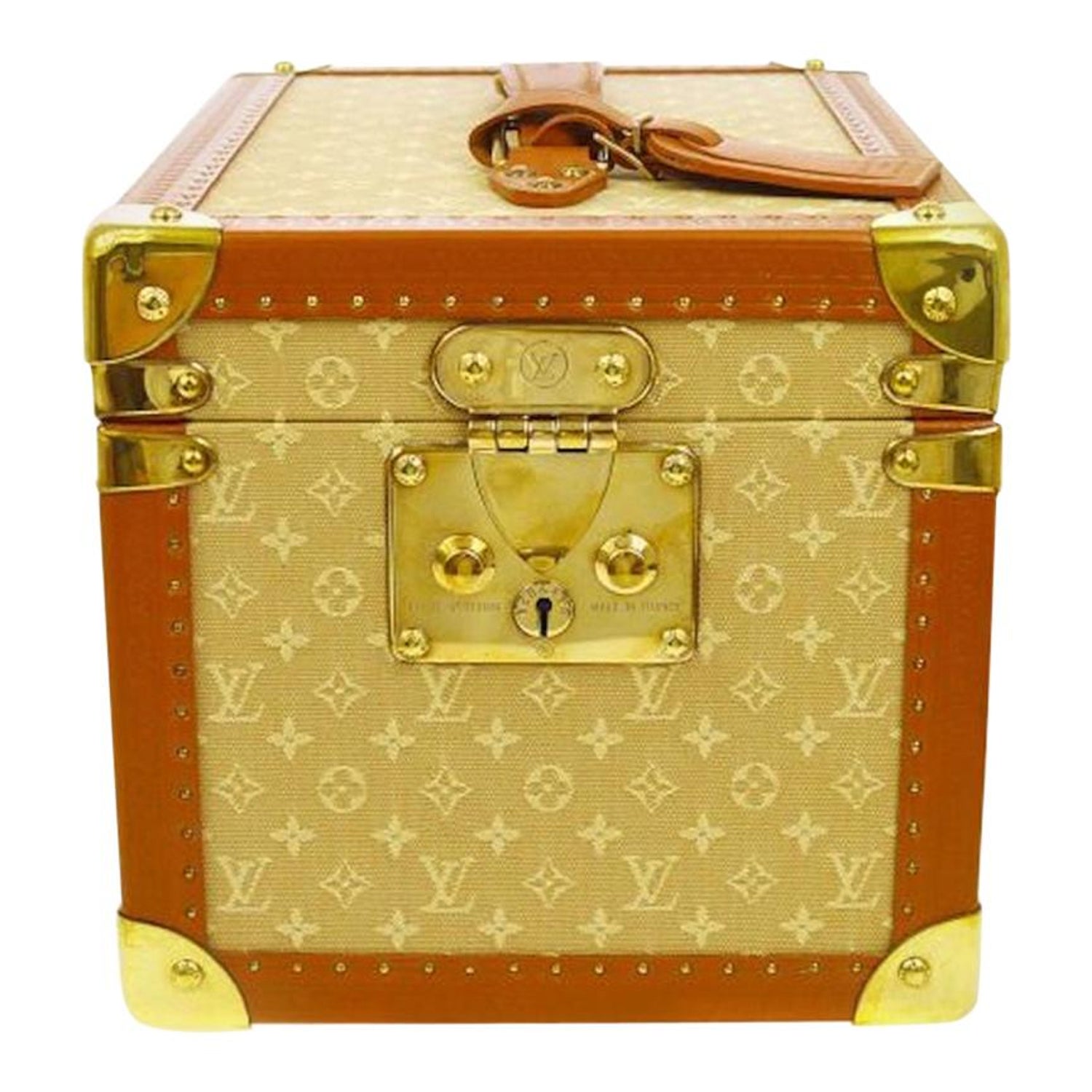 Louis Vuitton Tan Monogram Leather Travel Vanity Top Handle Storage Box Trunk For Sale At 1stdibs